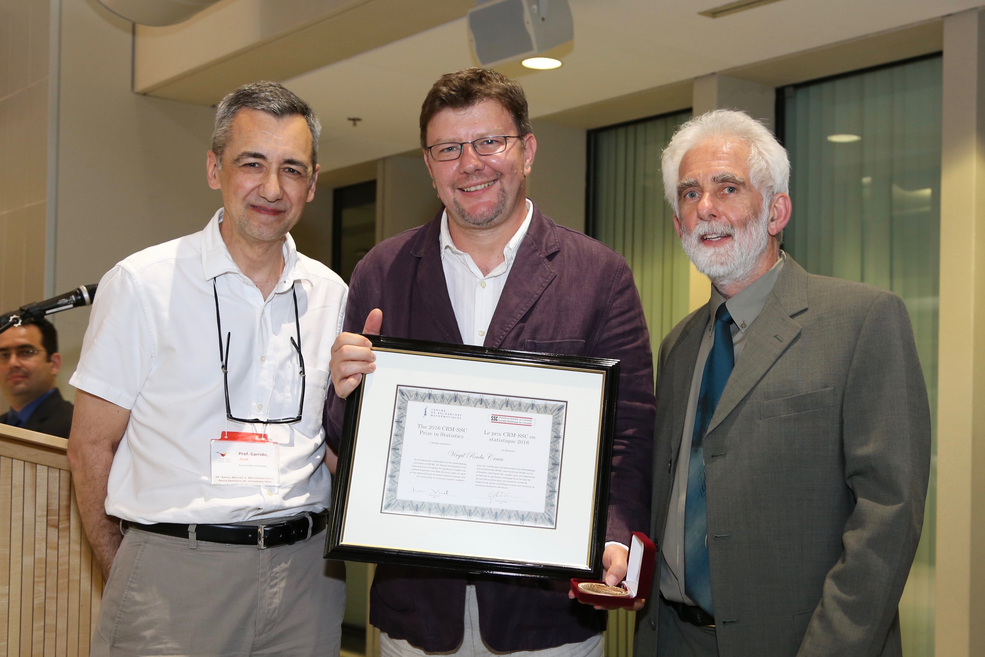 - 2016 – Winner of the CRM-SSC prize given by the Centre de Recherches Mathematiques and the Statistical Society of Canada. (Photo)